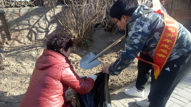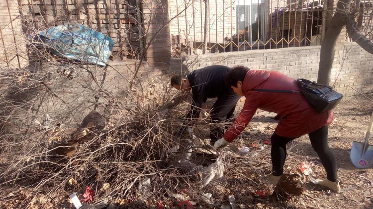 看安馨養(yǎng)老服務(wù)中心后院里參加清掃衛(wèi)生的青年團(tuán)員志愿?jìng)兡弥灾恪㈣F鍬、鋸等用具。開始了緊張的忙碌,鋸枯樹枝的,清掃院落的,清倒垃圾的,大家分工合作,經(jīng)過了一上午的清掃整理,整個(gè)院落更加的干凈整潔了。