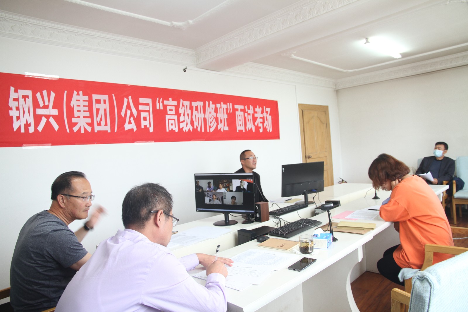 5月23日、24日上午,由集團(tuán)公司組織的“研修班”面試在公司六樓會議室順利進(jìn)行,南開大學(xué)三位權(quán)威教授和集團(tuán)公司的兩位高管組織面試,此次面試采用網(wǎng)絡(luò)在線視頻連線的方式進(jìn)行。集團(tuán)公司董事長、總經(jīng)理董繼鋼,黨委書記王建云親臨面試現(xiàn)場,考察面試現(xiàn)場情況。64位考生按照筆試前抽取的序號井然有序的依次進(jìn)行面試,為保證面試的公平性,考生在進(jìn)入考場后才抽取題目,現(xiàn)場進(jìn)行作答。面試從臨場應(yīng)對能力、綜合管理能力、理論學(xué)習(xí)情況和實踐管理情況等方面進(jìn)行全面考核,為選拔學(xué)員提供專業(yè)意見,多方面綜合評定考生的能力。